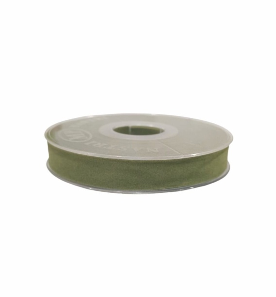 Wstążka włoska NASTRI DOUBLE VELVET – 1,5 cm × 7 m, welur, kolor: szałwiowy