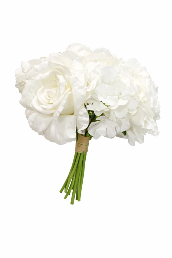 Ruža a hortenzia, kytica – 30 cm, biela